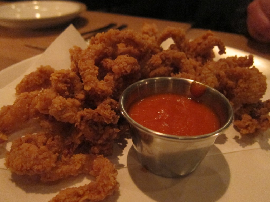 Chef Jason Travi’s menu consists of mostly small plates, with a strong emphasis on seafood. The aforementioned Clams Casino with Cracker Stuffing and Bacon is an absolute must-have, as is the Smoked Meats Poutine with Curds and Gravy. The Portuguese Mussels with Linguica, Beer and Chickpeas is one of the best mussel dishes I have ever eaten. I also recommend the Maple Eggs with Crispy Bacon (pictured above), the Clam Cakes with House Tartar Sauce, and the Apple Cider Braised Brussels Sprouts with Sage and Crispy Chicken Skin.