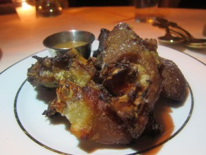We started our dinner with Pineapple Lollipops, sweet spears of fresh pineapple liberally sprinkled with chili salt; a simple but tasty appetizer that I will no doubt replicate at home. Because of the name alone, I knew we would have to order the Muh-F*K*N Mofongo, a stew made with overripe plantains, bacon, garlic and black pepper. Plantains and bacon are two of my favorite things and not surprisingly, I absolutely loved this dish. Another winning menu item was the Sugar Cane Fried Pigs Feet, which were deliciously crispy, salty and fatty. The Sugar Scotch Bonnet Short Ribs (pictured above) were finger-lickin’ good!